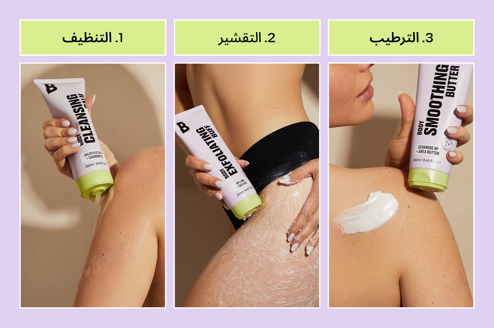 دلكي البشرة أثناء الاستحمام أو في الحمام، ثم اشطفيه بالماء الدافئ.