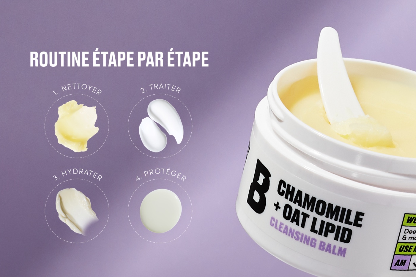 Composé à 86 % d’ingrédients d’origine naturelle, ce baume nourrissant et hydratant est formulé avec des lipides d’avoine riches en céramides pour régénérer la peau. Associé aux propriétés nettoyantes et apaisantes de la camomille, il soulage également les peaux stressées et irritées.