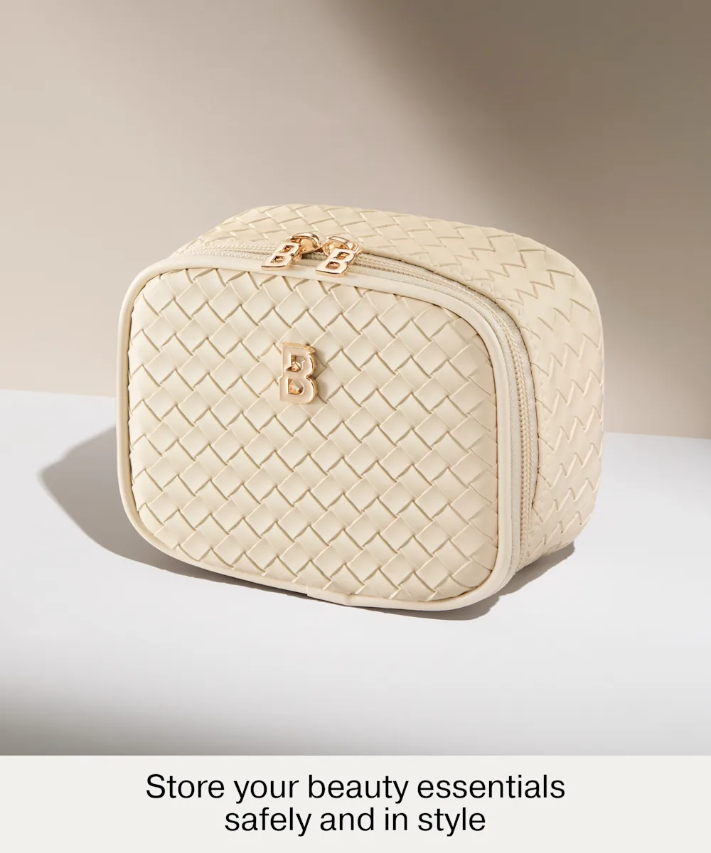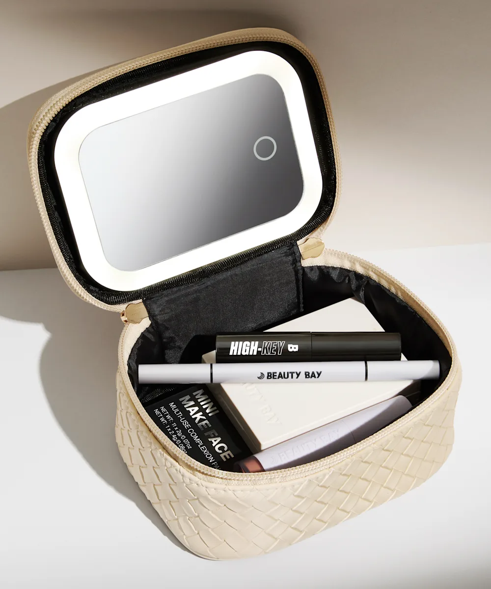 Store your beauty essentials safely and in style with the LED Mirror Mini Travel Beauty Bag from By BEAUTY BAY. Inside, you’ll find a detachable, rechargeable LED mirror, making it easy to apply or touch up your makeup wherever your plans take you. Made from cream woven PU with gold hardware, this structured case keeps your must-have products secure and organised. With custom ‘B’-shaped zip pulls and a gold embossed ‘B’ logo detailing, it combines functionality with a sleek, ultra-convenient design.