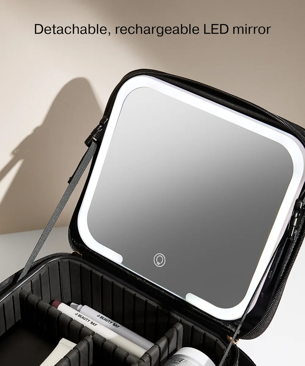 A large structured beauty case with a LED detachable mirror, ideal for storing and organising your makeup essentials.