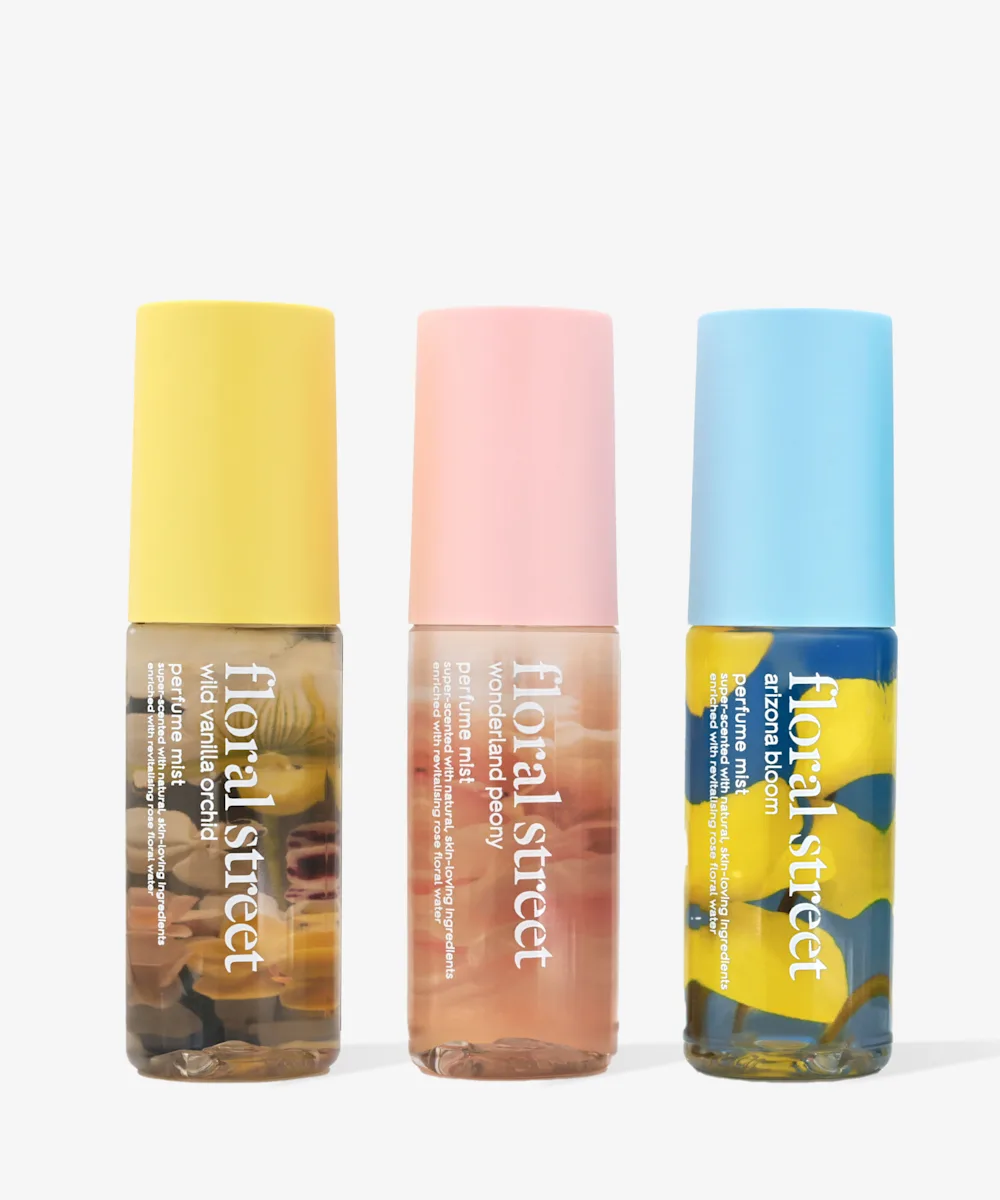 Spritz on something fresh with the Power Up Mini Mist Trio. Packed with skin-loving ingredients, each perfume mist (Wonderland Peony, Wild Vanilla Orchid and Arizona Bloom) contains innovative ActiScent™ ingredients to soothe and revitalise the skin, all while bringing a refreshing cloud of fine fragrance.