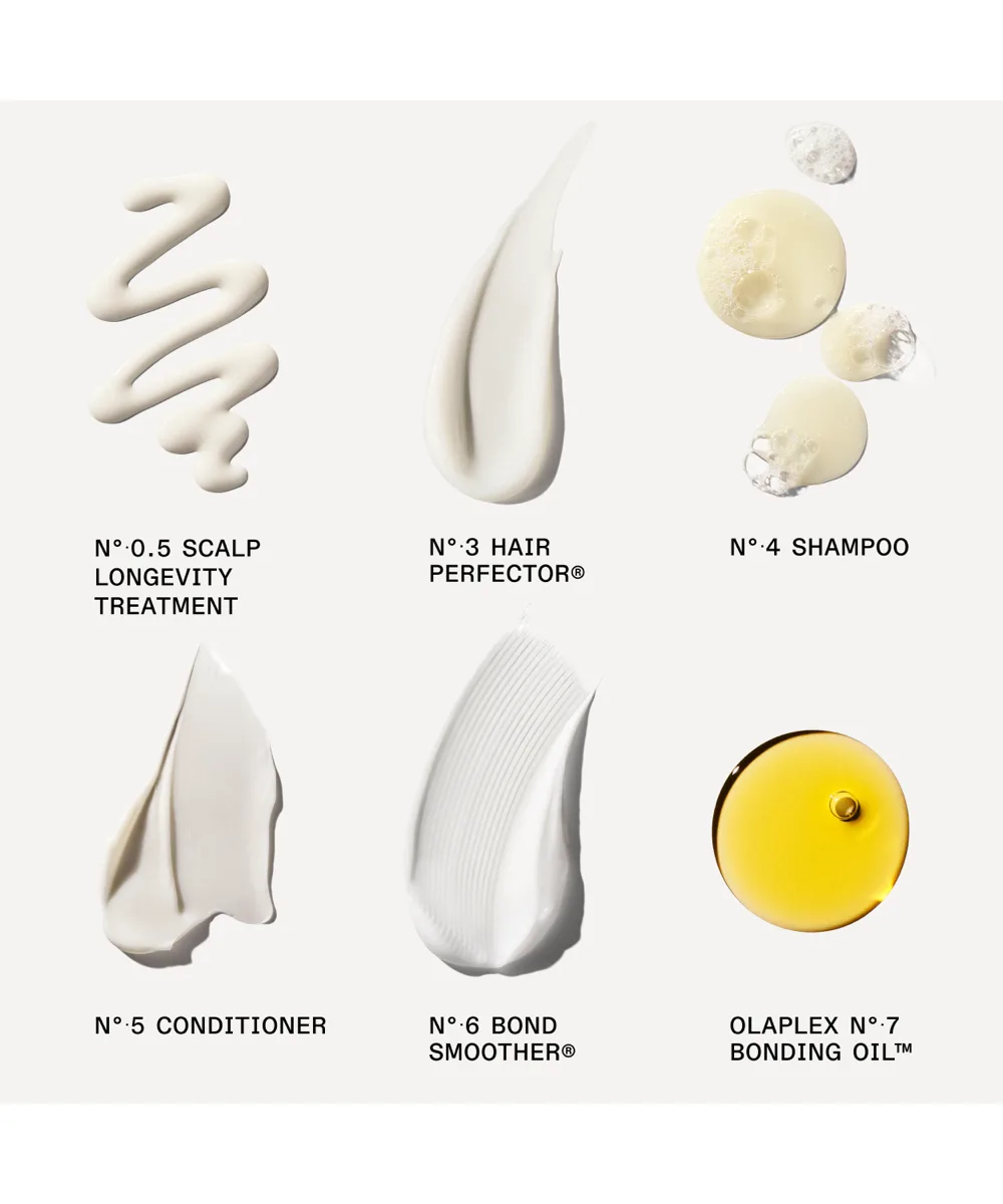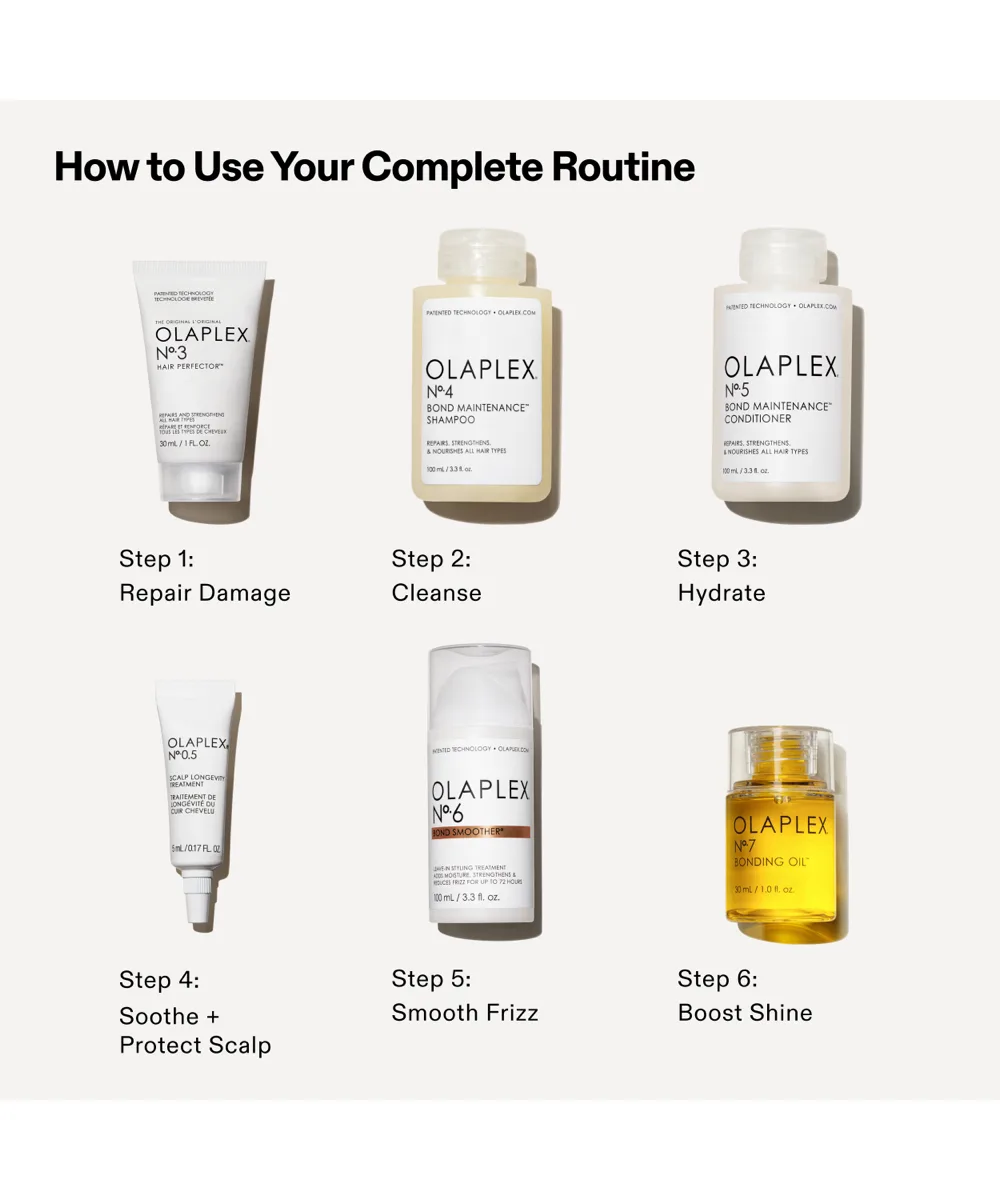 Get glowingly healthy hair with the OLAPLEX The Full On Shine Set. This limited-edition collection includes six reparative and styling essentials designed to repair, cleanse, and style all hair types. With everything from deep treatments to heat-protective oils, this set leaves your hair stronger, shinier, and effortlessly smooth after each use. It includes full sizes of the No.6 Bond Smoother® for frizz control and the OLAPLEX No.7 Bonding Oil™, a bestselling hair oil for instant shine and sleek softness. Ready for your most luscious locks yet?