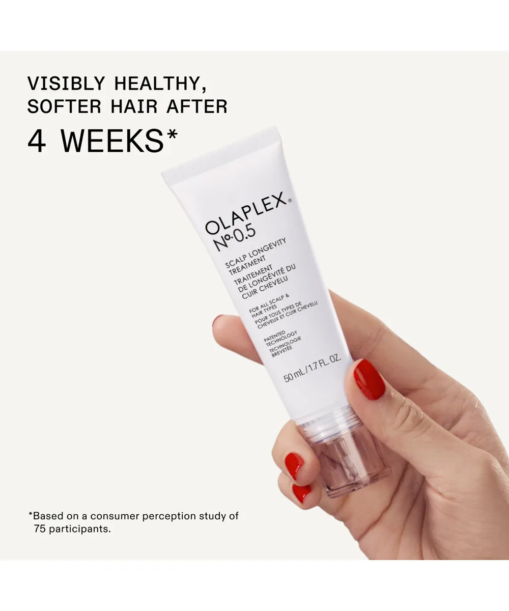 N°.0.5 SCALP LONGEVITY TREATMENT Aqua/Water/Eau, Glycerin, Propanediol, C9-12 Alkane, Octyldodecanol, Bis-Aminopropyl Diglycol Dimaleate, Phenoxyethanol, Sodium Acrylates Copolymer, Oryza Sativa (Rice) Bran Oil, Arginine, Chlorphenesin, Glycine Soja (Soybean) Seed Extract, Hydrogenated Polydecene, Lecithin, Coco-Caprylate/Caprate, Citric Acid, Menthoxypropanediol, 1,2-Hexanediol, Ceramide NP, Cetearyl Alcohol, Glyceryl Stearate, Tasmannia Lanceolata Leaf Extract, Phenethyl Alcohol, Pogostemon Cablin Leaf/Stem Extract, Lavandula Angustifolia (Lavender) Flower/Leaf/Stem Extract, Lavandula Oil/Extract, Pentylene Glycol, Leptospermum Scoparium Branch/Leaf Oil, Ceramide AP, Cholesterol, Hydrogenated Lecithin, Phytosphingosine, Stearic Acid, Magnolia Officinalis Bark Extract, Piper Nigrum (Pepper) Seed Extract, Tetraacetylphytosphingosine, Sodium Acetylated Hyaluronate, Sodium Hyaluronate, Sodium Hyaluronate Crosspolymer, Xanthan Gum, Hydrolyzed Sodium Hyaluronate, Ceramide EOP, Sodium Benzoate, Ethylhexylglycerin, Glycosphingolipids