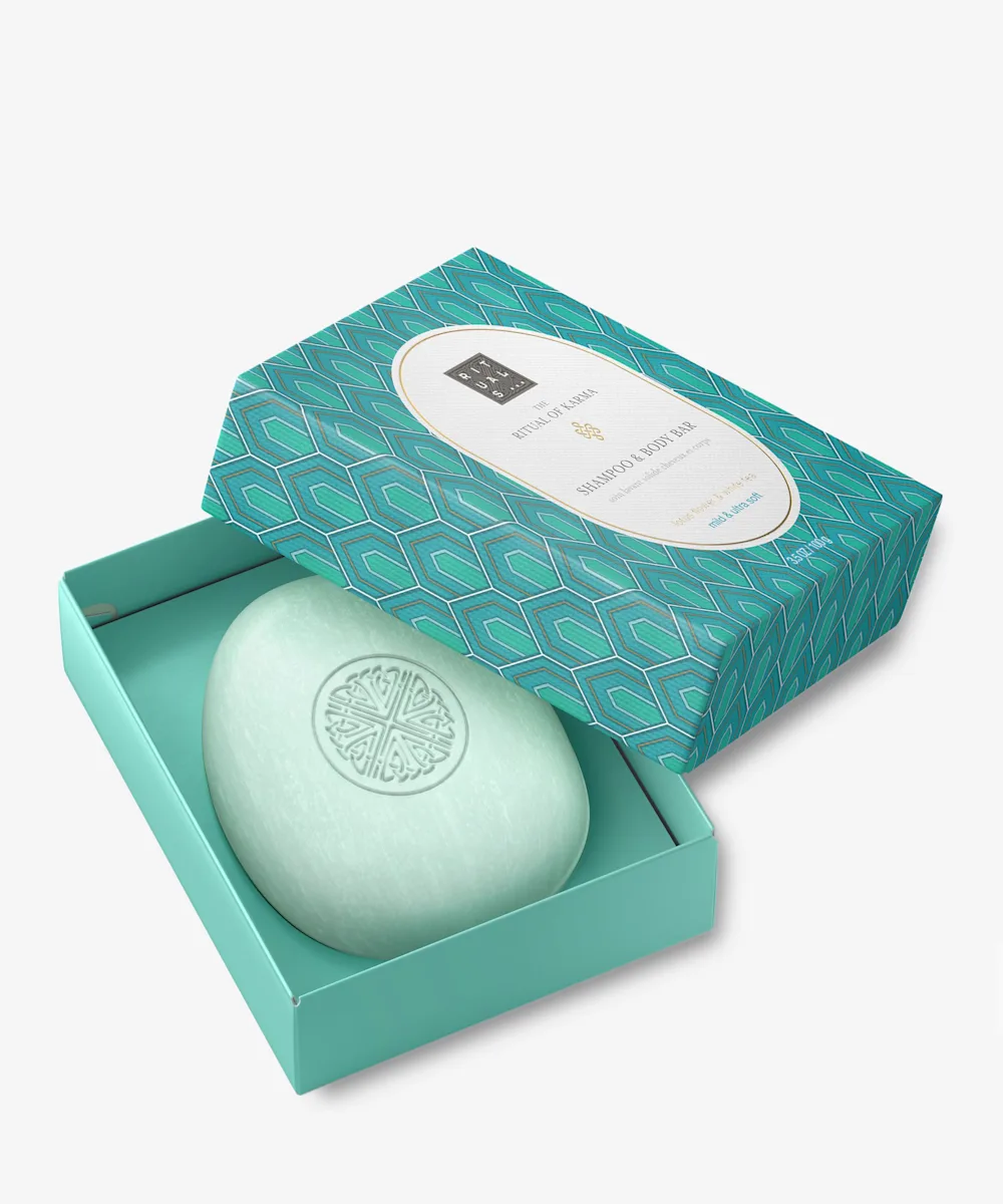 Get your whole routine in one with The Ritual of Karma Shampoo & Body Bar. Gently cleansing from top to toe, this luxurious must-have is enriched with squalane and aloe to hydrate skin and hair. With an ultra-rich formula based on 91% natural origin ingredients, it gently foams to lift away dirt for a healthy glow. Lightly fragranced with an uplifting blend of lotus flower and white tea, you'll be left feeling refreshed, renewed and ready for whatever the day has in store.