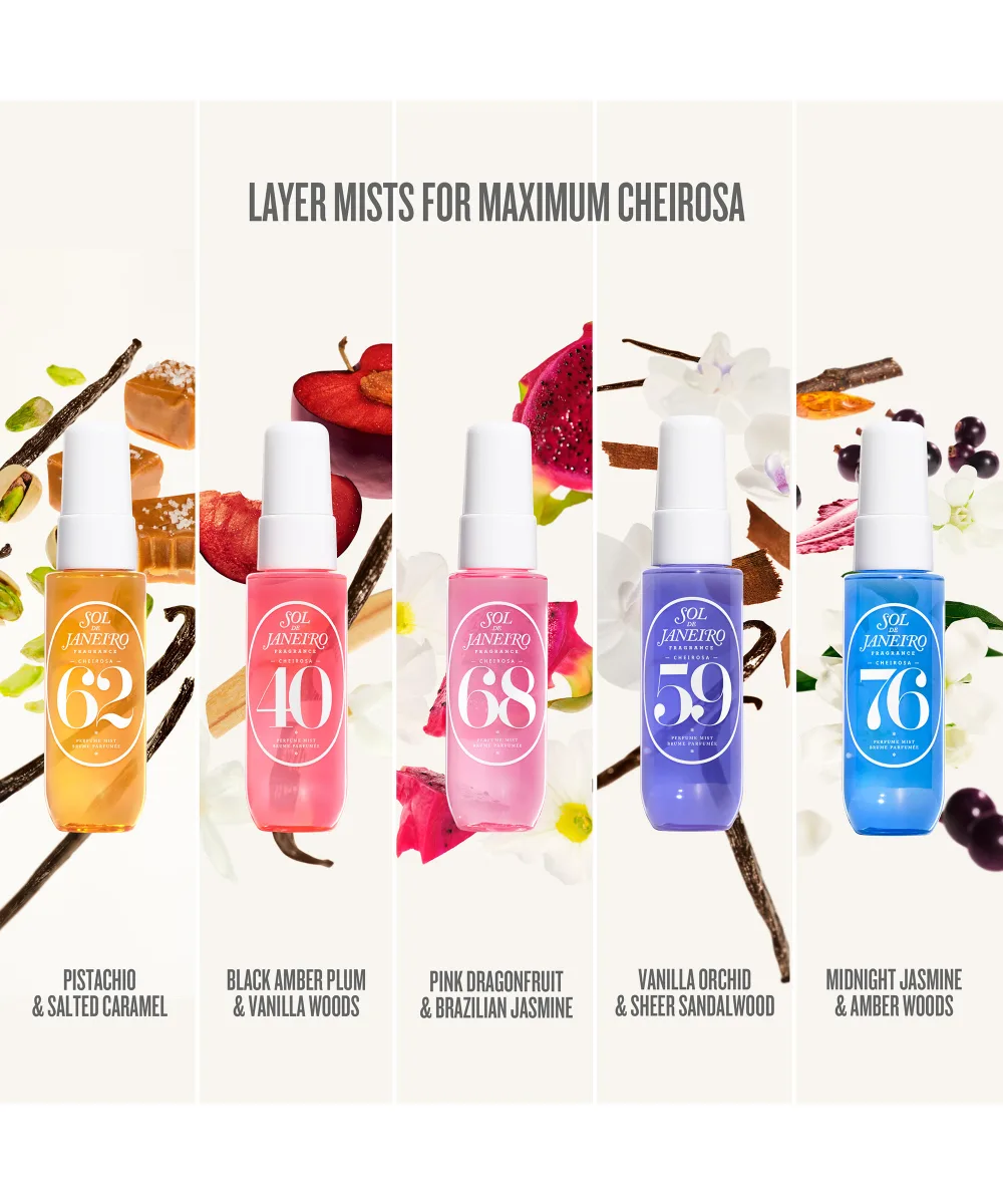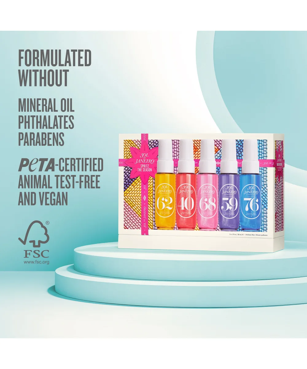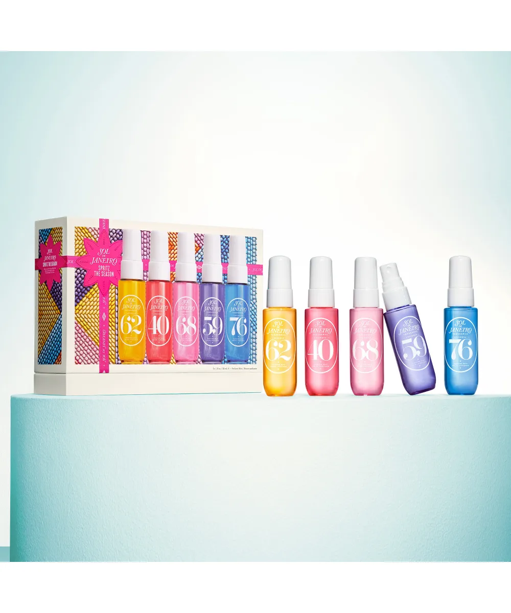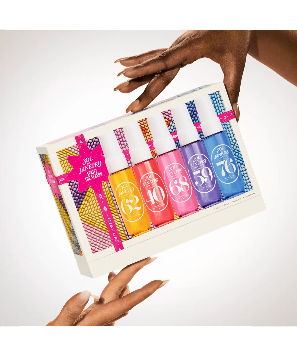 Celebrate the season of spritzing with the Sol de Janeiro Spritz the Season Set. Featuring five of the brand’s most-loved Cheirosa Perfume Mists in perfectly giftable sizes, this collection is made for layering, mixing, and matching to create your own signature scent—or wearing solo for a burst of tropical joy. From the iconic gourmand warmth of Cheirosa ’62 to the solar floral radiance of Rio Radiance, every mist transports you to sun-soaked moments and samba-filled nights. The ultimate treat for fragrance lovers (and an irresistible gift).